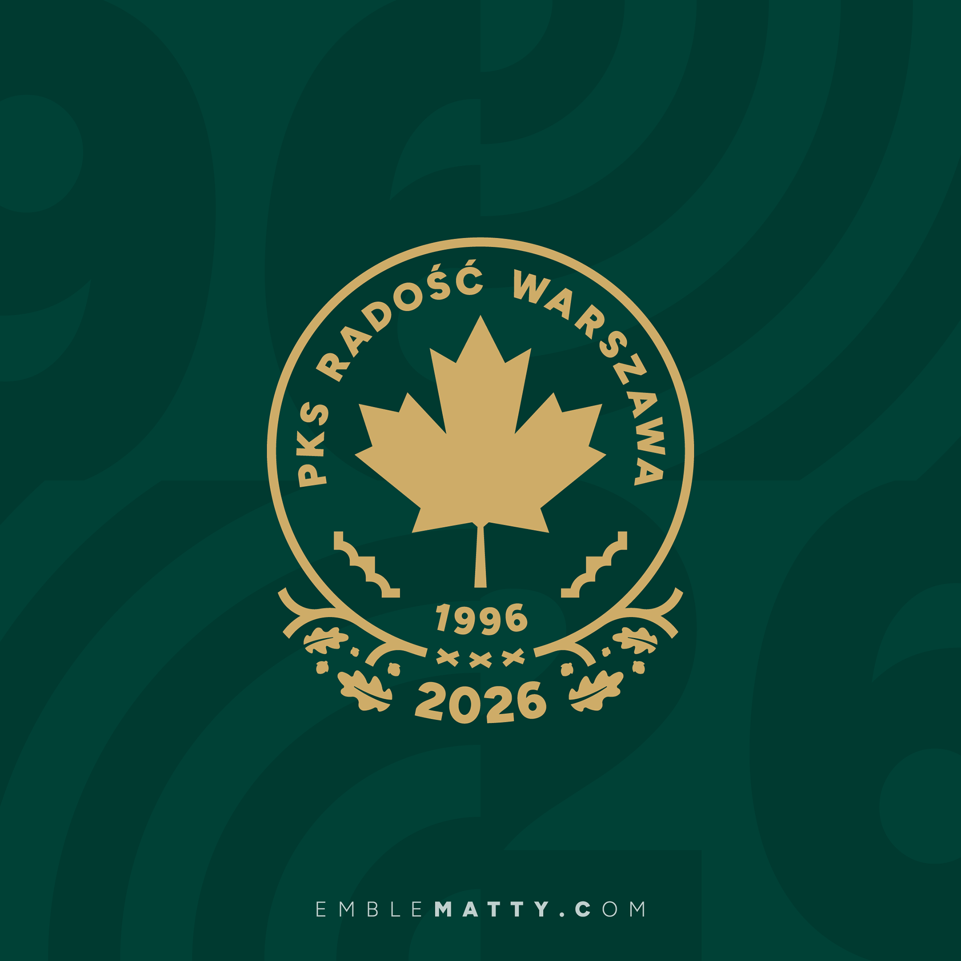 Skorygowałem geometrię klonowego liścia i wyrysowałem od nowa ozdobne ornamenty. Rok założenia klubu i jubileuszu 30-lecia rozdziela rzymska liczba "30" (XXX).